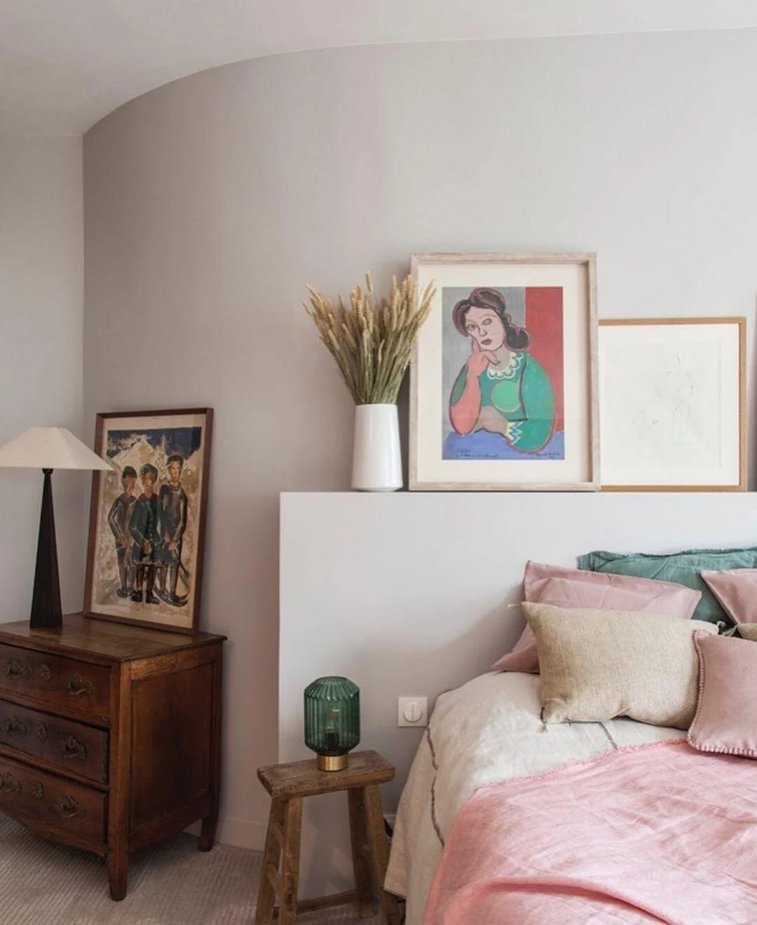 If you’re renting, there are (again) lots of products that allow you to hang pictures without damaging the walls. Command strips are a reliable go-to. You can also lean bigger pieces on dressers and existing shelves — very stylish and rental-friendly.
