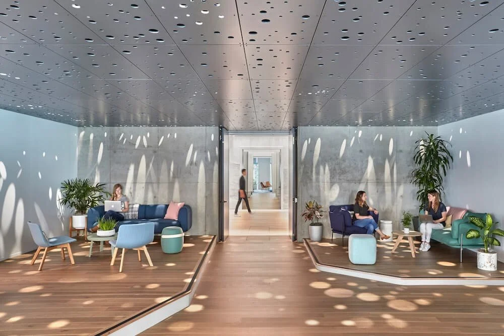 Does your company prioritize team working? If so, it’s important to include a variety of collaborative working areas. Meeting rooms are a must-have but what about adding a lounge-like area with some comfortable seating? Perfectly-sized niche spaces, designed with co-creation in mind, are where the magic really happens.